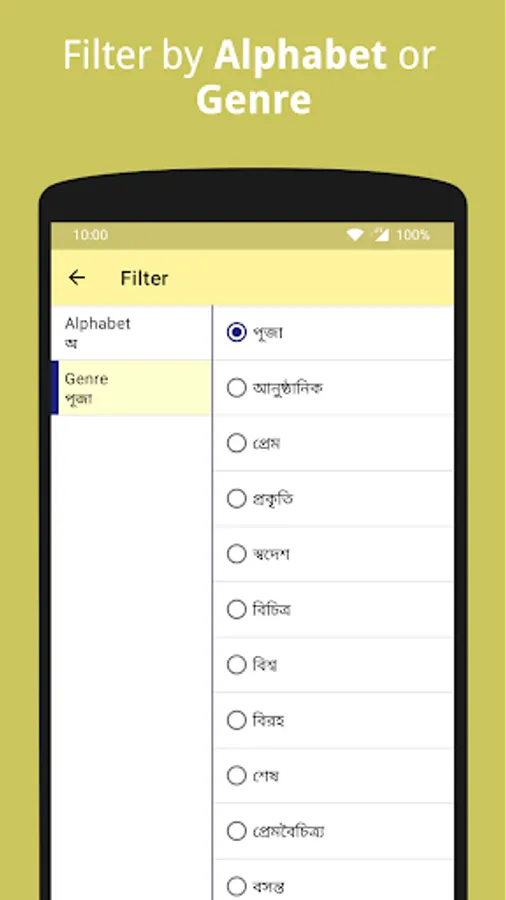 Unlike the Swarabitan book by Rabindranath Tagore, where you can view only the notations (swaralipi). In Gitabitan Plus, you get the lyrics, notations and the ability to playback the notes on your desired scale and tempo.