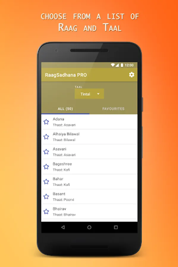 * 10 Raag based on 10 Thaat [More raags in the PRO version, details given below]