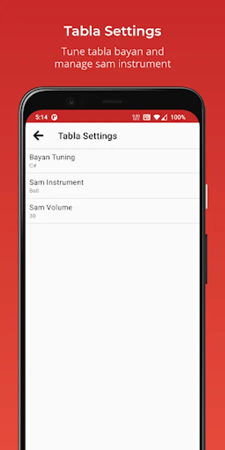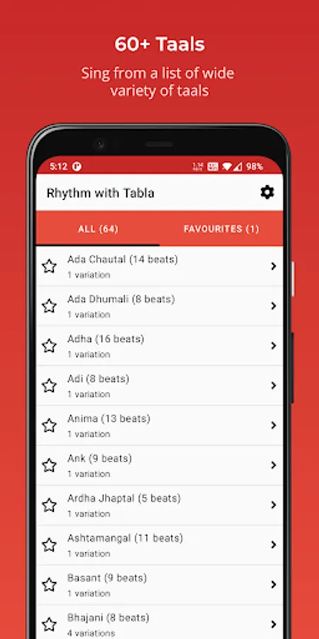 * Settings page lets you control vibration, screen awake, taal name sorting preference and many more.