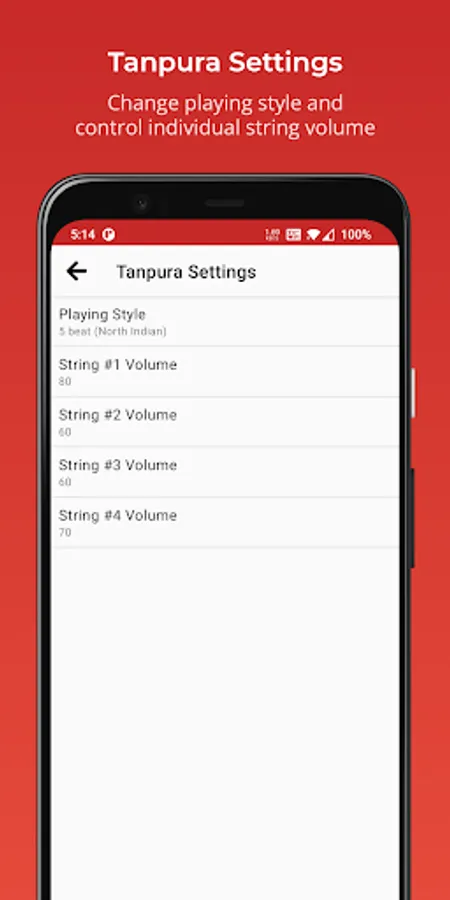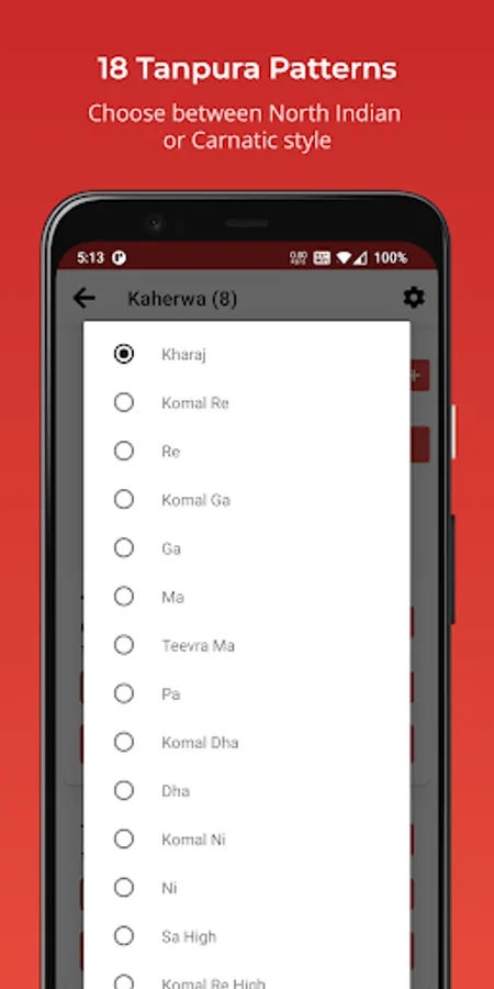 - Choose between North Indian (5 beat) or Carnatic Style (6 beat)