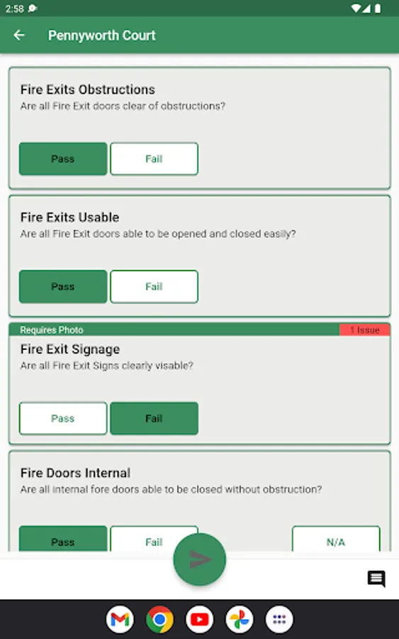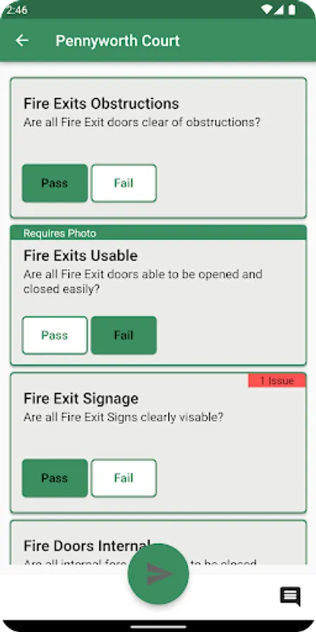Record Inspections as defined by requirements, manage any failures as Issues to ensure any faults are on the path to rectification.