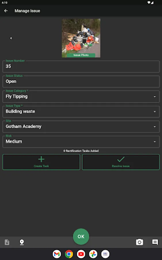 Records Issues as seen on Site, enabling Supervisors to use the App to manage Issues on Site with Rectification Tasks looping back into Programs