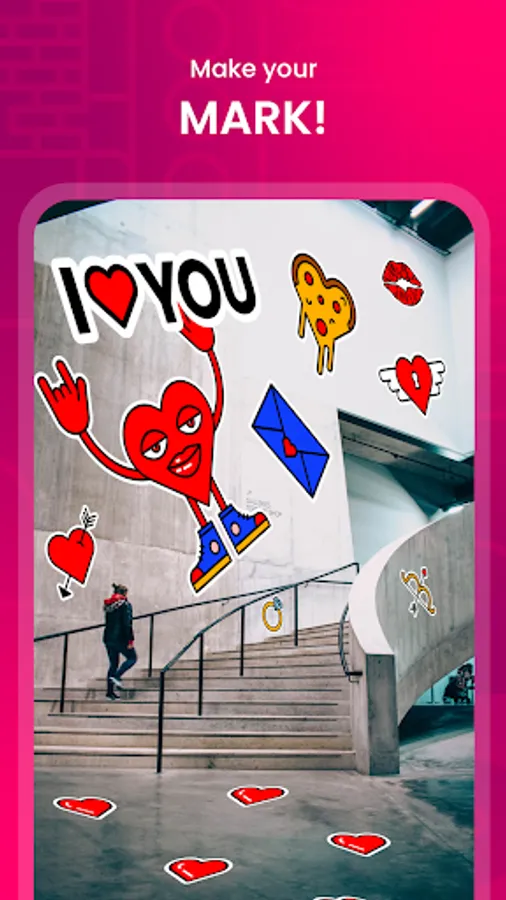 * Use our creative tools in real world locations to share your dreams, spread your message, or just add colorful stickers to sad looking walls.