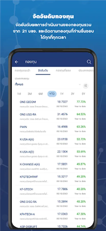 • Fund Ranking: จัดอันดับกองทุน จัดอันดับผลการดำเนินงานของกองทุนรวมจาก 21 บลจ. และติดตามกองทุนที่ท่านชื่นชอบ ได้ทุกที่ทุกเวลา