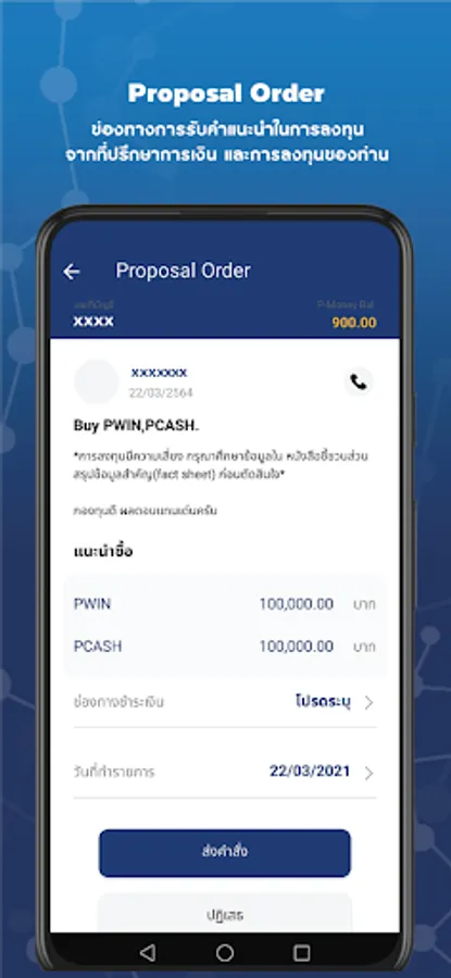 • Proposal Order: ไม่พลาดทุกคำแนะนำ ดูแลอย่างใกล้ชิด กับช่องทางการรับคำแนะนำในการลงทุนจากที่ปรึกษาการเงินและการลงทุนของท่าน