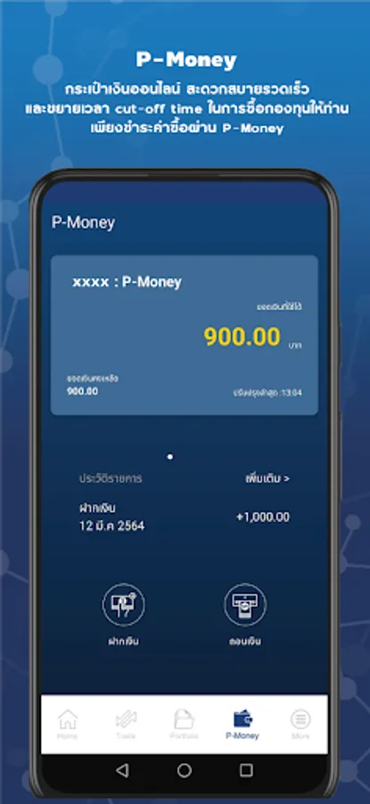 • P-Money: กระเป๋าเงินออนไลน์ สะดวกสบายรวดเร็ว และ ขยายเวลา cut-off time ในการซื้อกองทุนให้ท่าน เพียงชำระค่าซื้อผ่าน P-Money