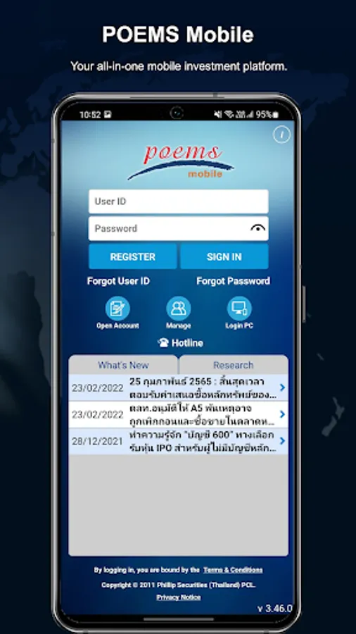 เพิ่มอำนาจการลงทุนของท่าน ด้วยโปรแกรม POEMS Mobile ซึ่งเป็นบริการซื้อขายหุ้นและอนุพันธ์ผ่าน Android phone พัฒนาโดยบริษัทหลักทรัพย์ ฟิลลิป (ประเทศไทย) จำกัด (มหาชน) ช่วยให้ท่านไม่พลาดการเคลื่อนไหวของตลาดหลักทรัพย์ฯ และตลาดอนุพันธ์ สะดวก รวดเร็ว ทุกที่ทุกเวลา เพียงใช้โปรแกรม POEMS Mobile อำนาจแห่งการลงทุนจะอยู่ในมือของท่าน ทุกที่ ทุกเวลา