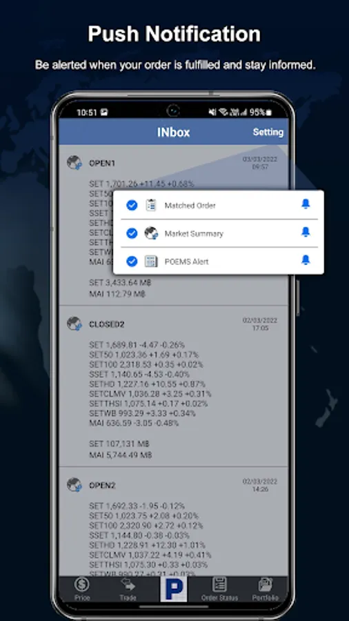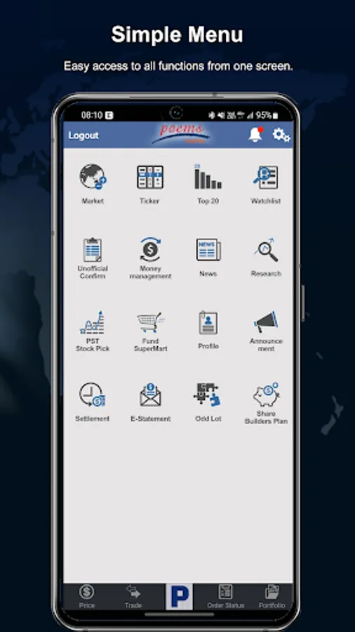 POEMS Mobile unleashes your trading by giving you the convenience of dynamic investment anytime anywhere. You can capture market opportunities with live prices, real-time trading, order status, and online portfolios. With easy access, safe, and secured trading environment, you will be in control of your investments wherever you are.