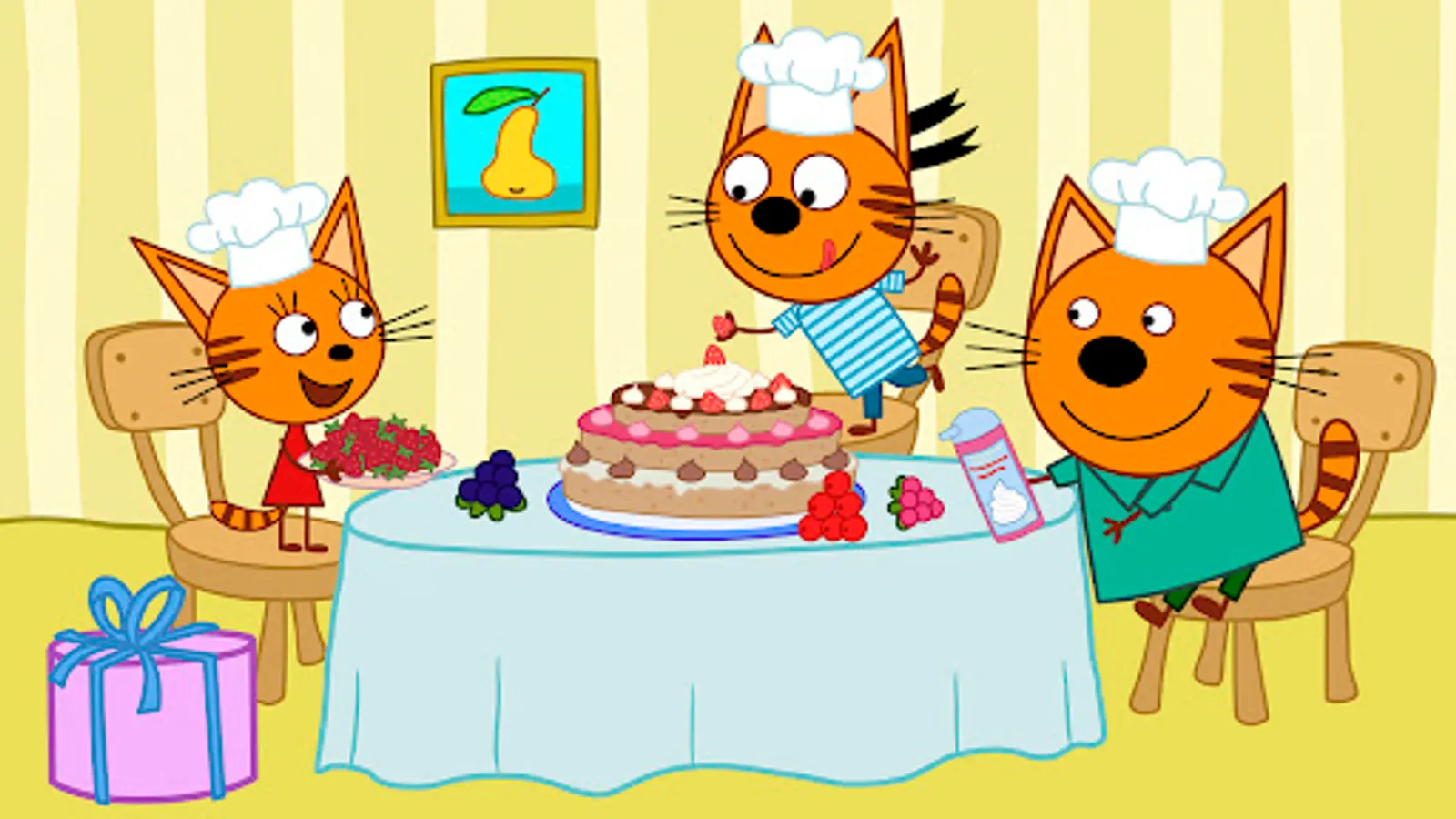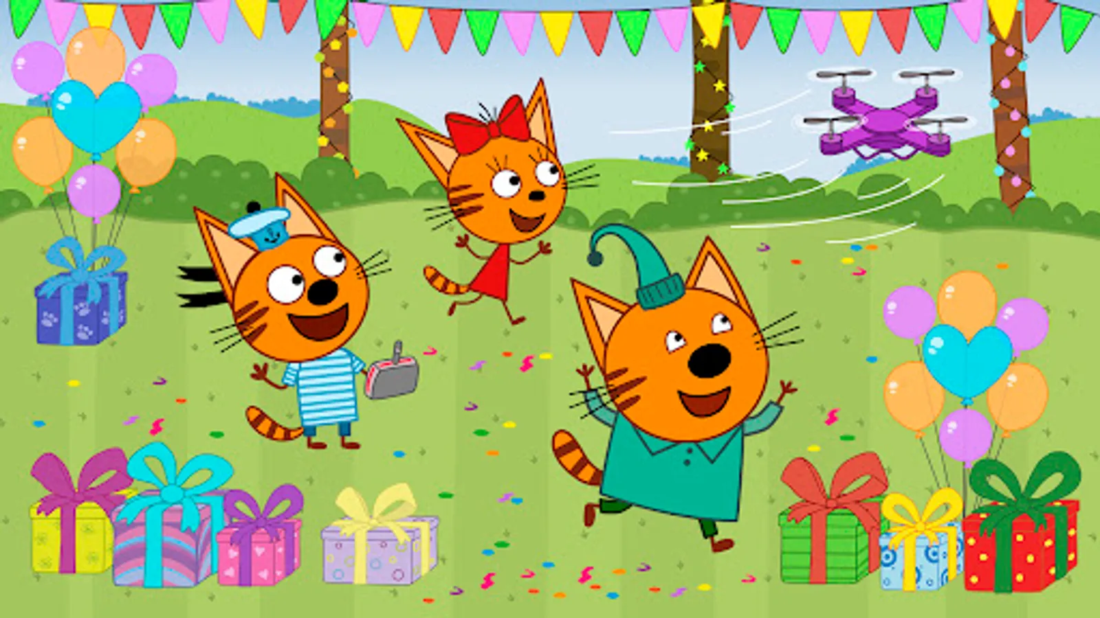 Welcome to our new funny exciting game for toddlers Kid-E-Cats: Kids birthday from the collection of our kids educational games. Little players will take part in holiday adventures of Cookie, Pudding and Candy. Our favourite cartoon characters like to have fun. Are you ready to take part in a celebration with a cake and a lot of funny tasks?