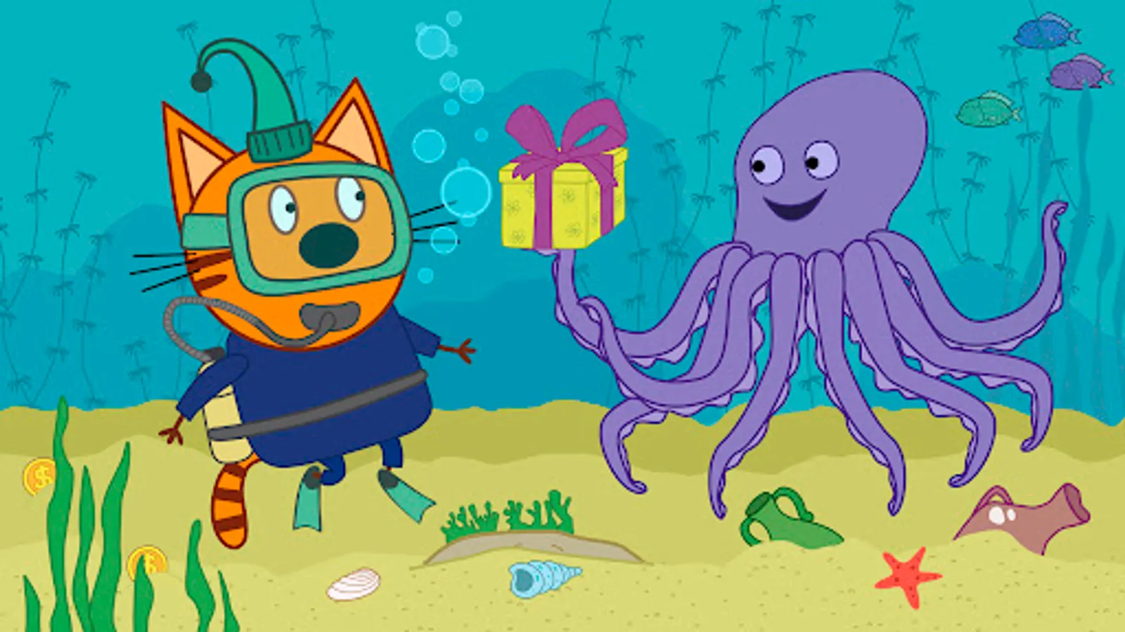 Prepare your presents and let’s go to a funny kids party! Kid-E-Cats will bake a cake, draw, colour pictures, play hide and seek and find objects, cook and collect puzzles. There will be a real sea adventure too.