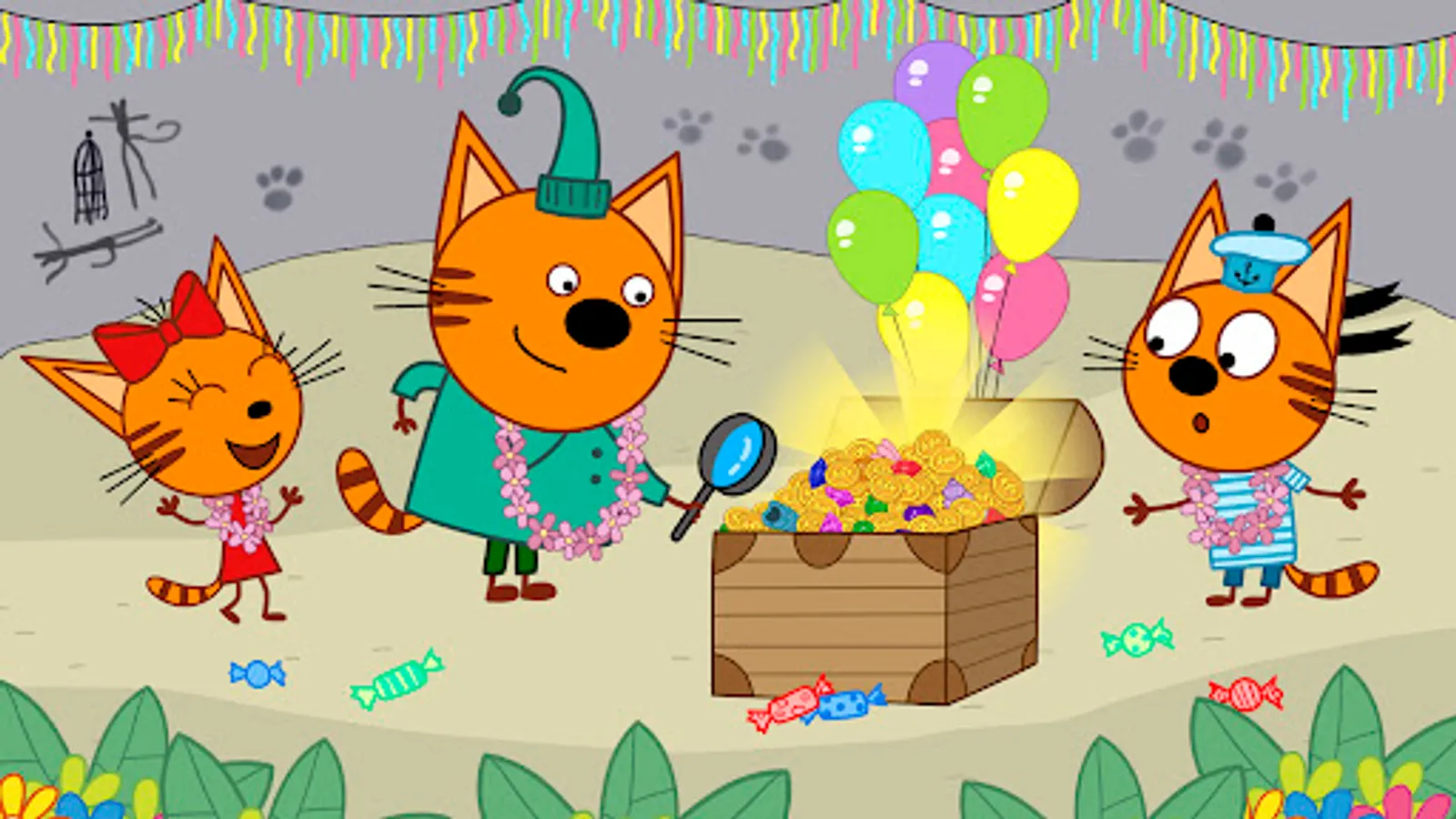Let’s celebrate with funny costumes, colorful balloons and yummy cake! Blow up candles and make up a wish! Make a party with kittens and have a lot of fun!