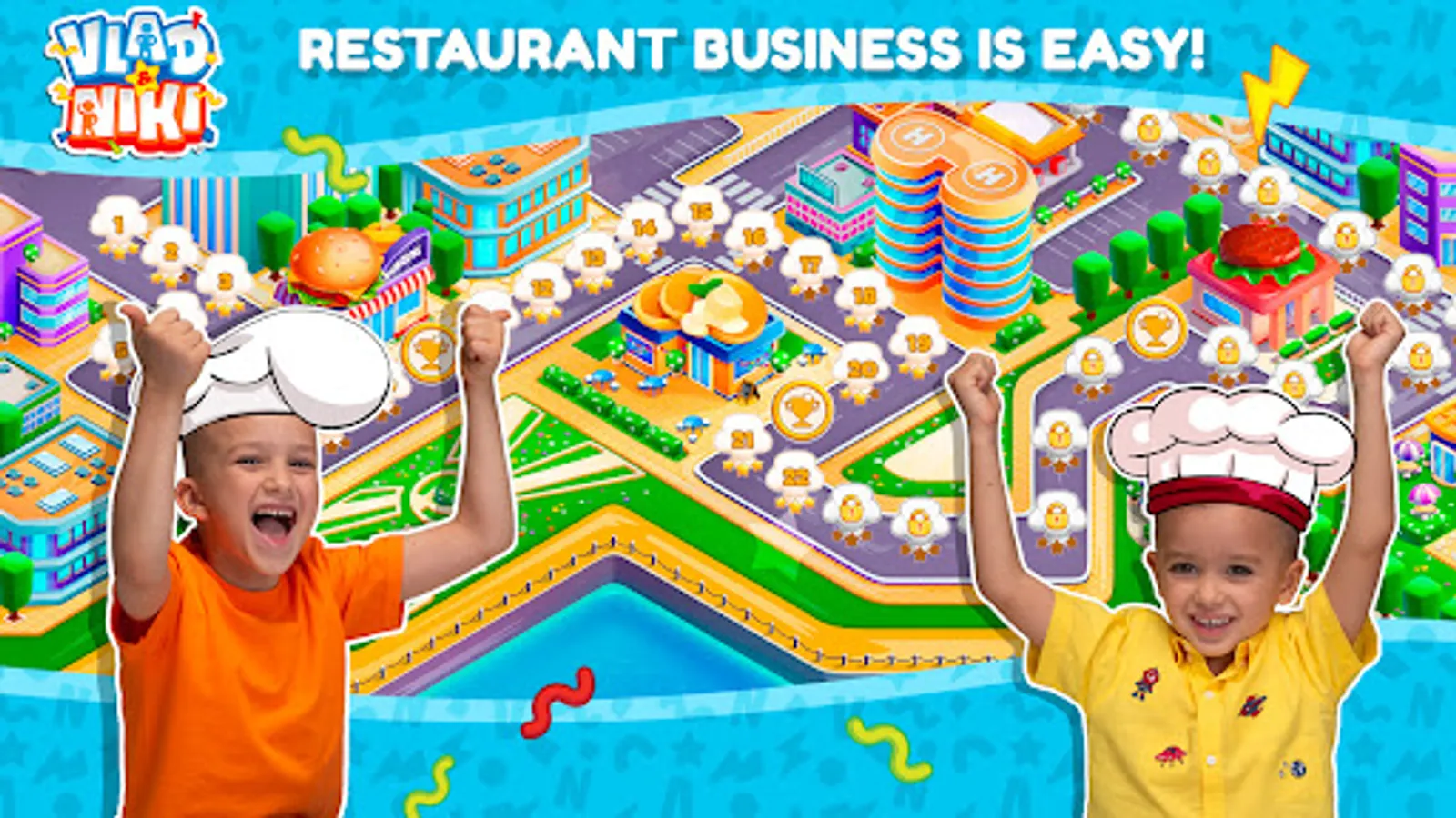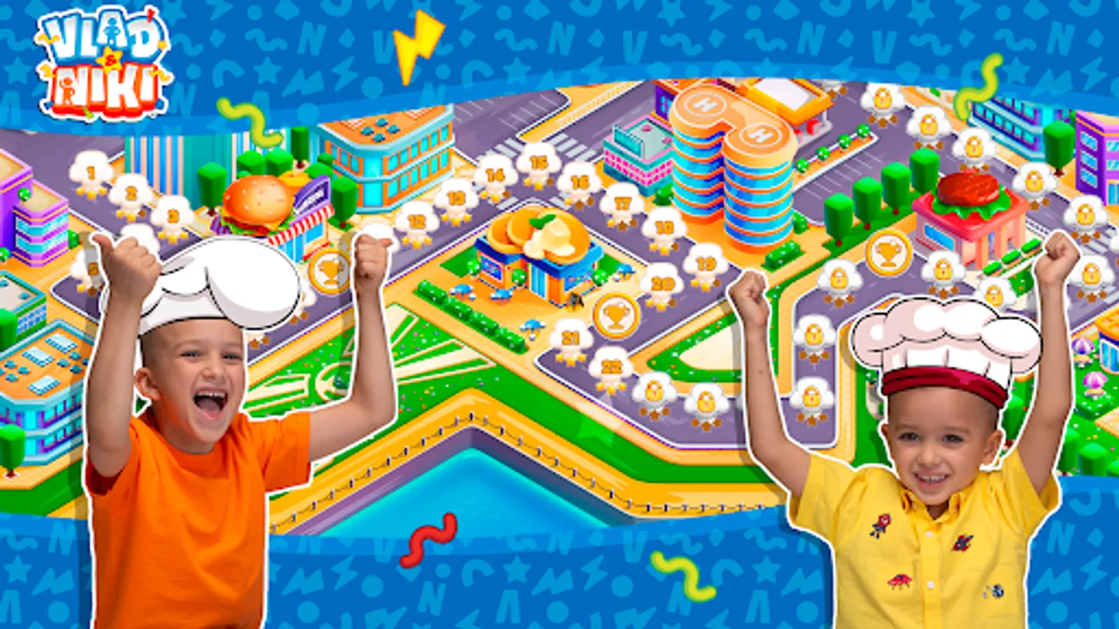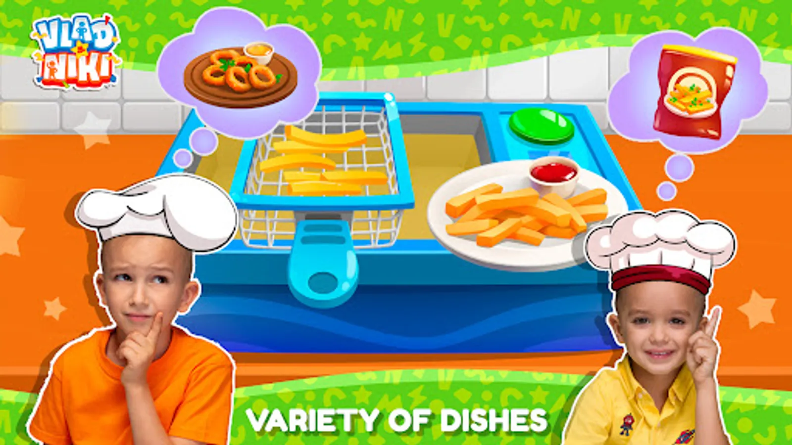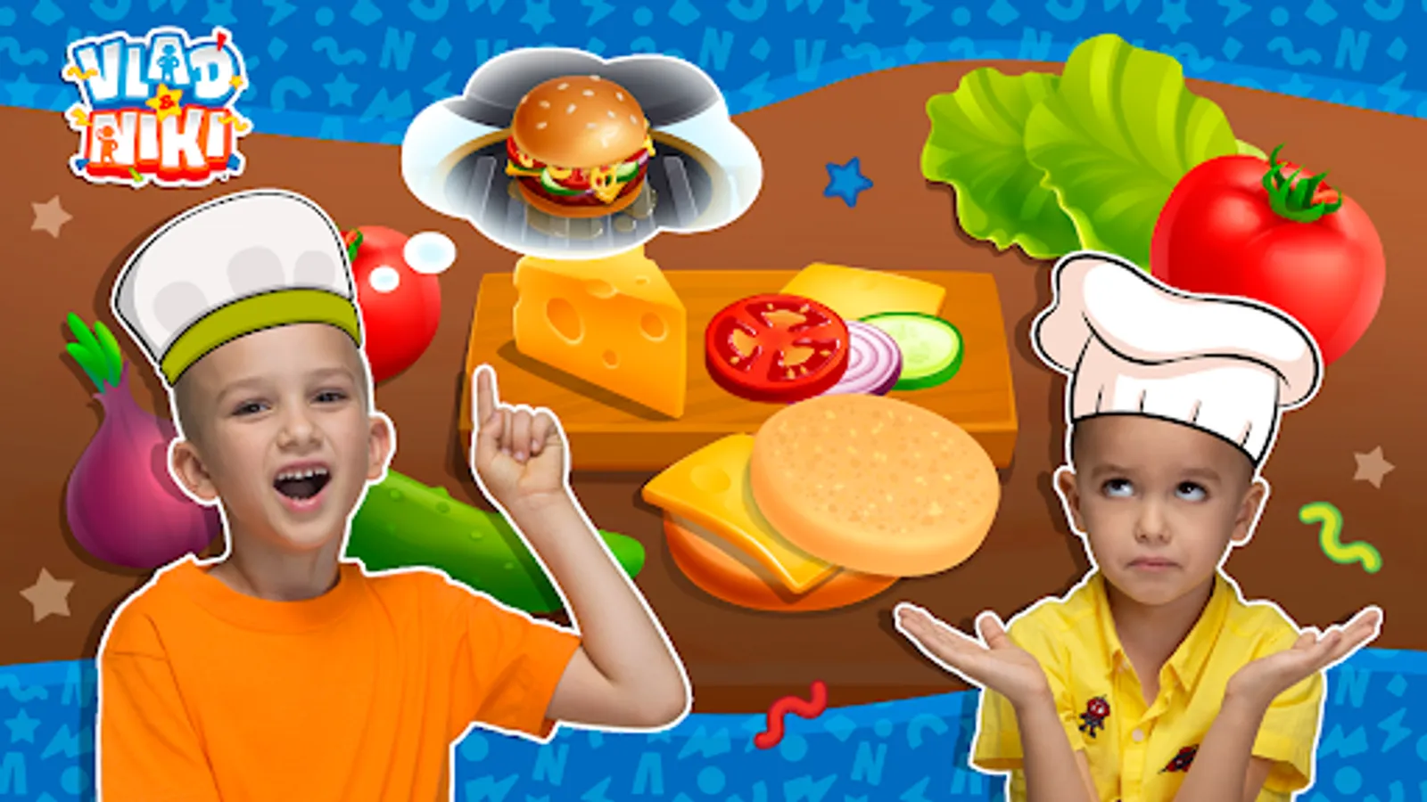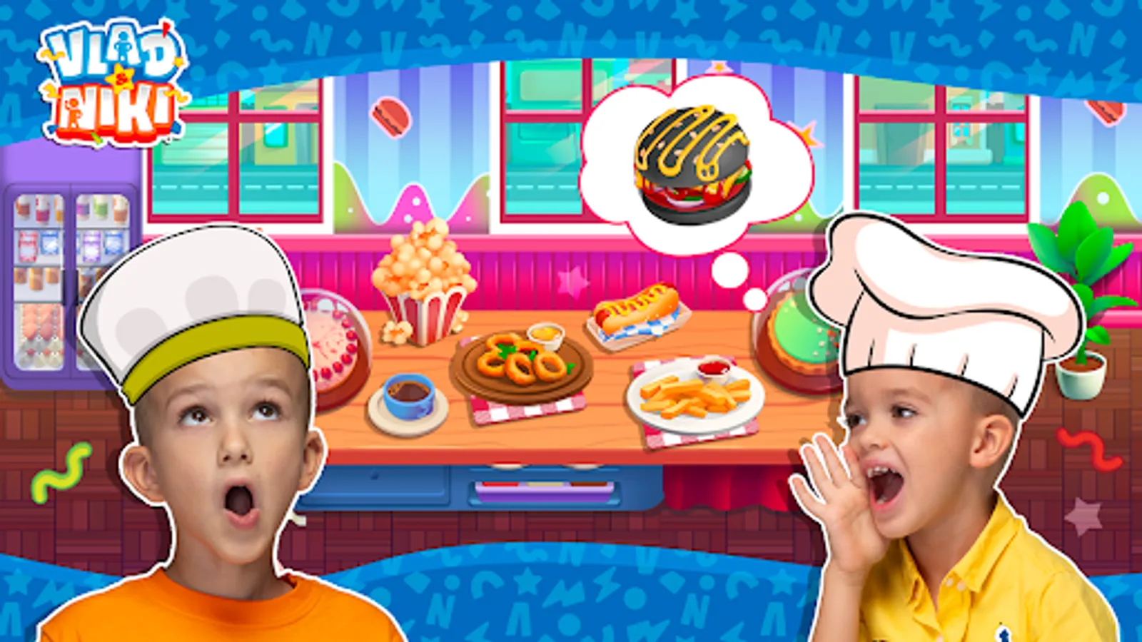 Popular vloggers Vlad and Niki take action! This is an exciting kids game about cooking in a cafe for boys and girls. Your toddler will be a real cook and an owner of a fast food restaurant. Kids like to cook and feed friends. Vlad and Niki’s kids cafe opens its doors. It must be a success!