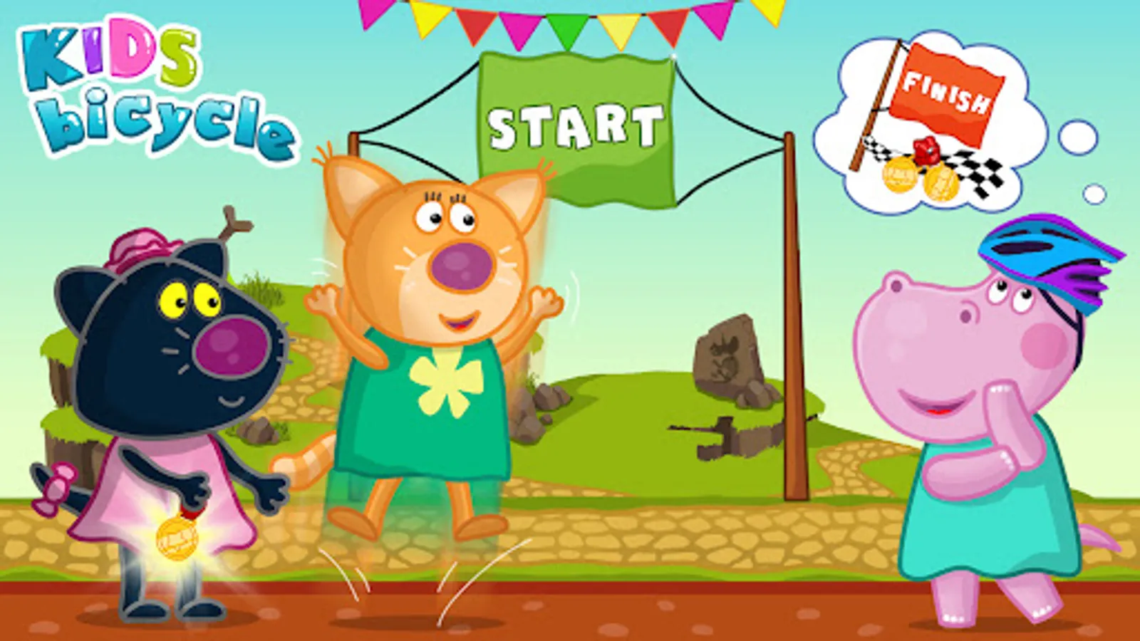New simulator game of bicycle racing. This is the ideal bicycle adventure for kids, who like speed and competitions. This free app is perfect for toddlers, boys and girls and as well for their parents. Take part in family competitions, set new records and have fun with Hippo.
