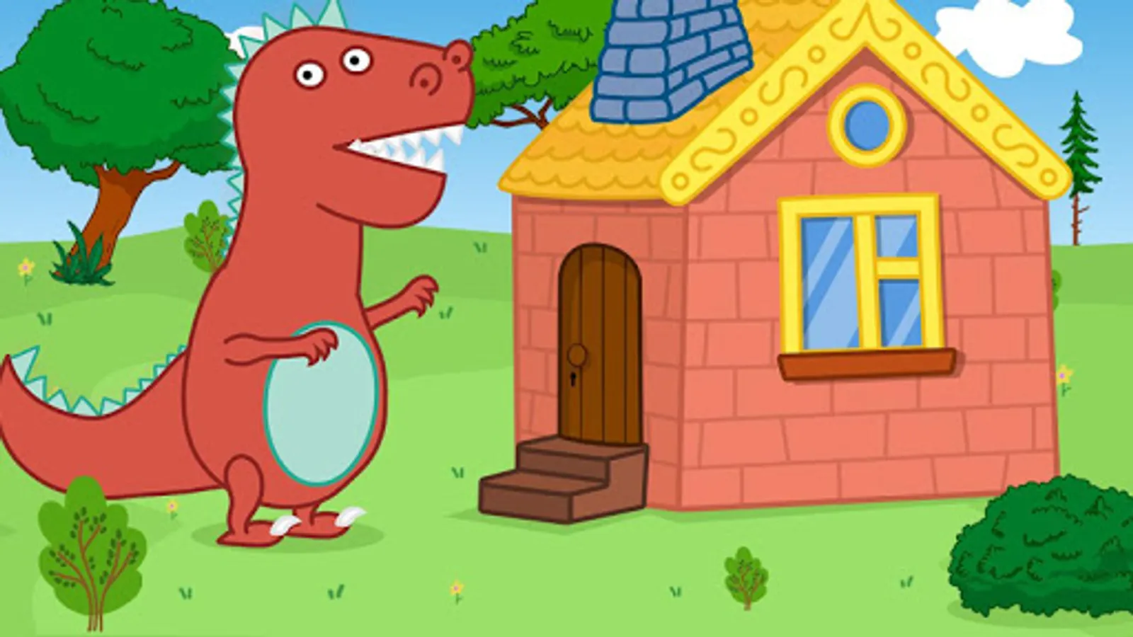 As you know, free games for kids and parents are renewed with an interesting interactive fairy tale The Three Little Pigs. Everybody likes to watch cartoons with favorite heroes and listen to exciting fairy tales. But today, you and your kid could become heroes of this funny story themselves. Like the heroes of a classical fairy tale, our friends are going to build a house out of straw and leaves, then from wooden planks and at the end of the hard bricks. And once friends finish building a house, it still needs to be painted in bright colors. But other than that our interactive fairy tale will have much more funny games for free. Fairytales are interesting themselves. But what would happen if, while listening to the story, the kid could play hide and seek with funny characters and throw the tomatoes at a toy dinosaur?