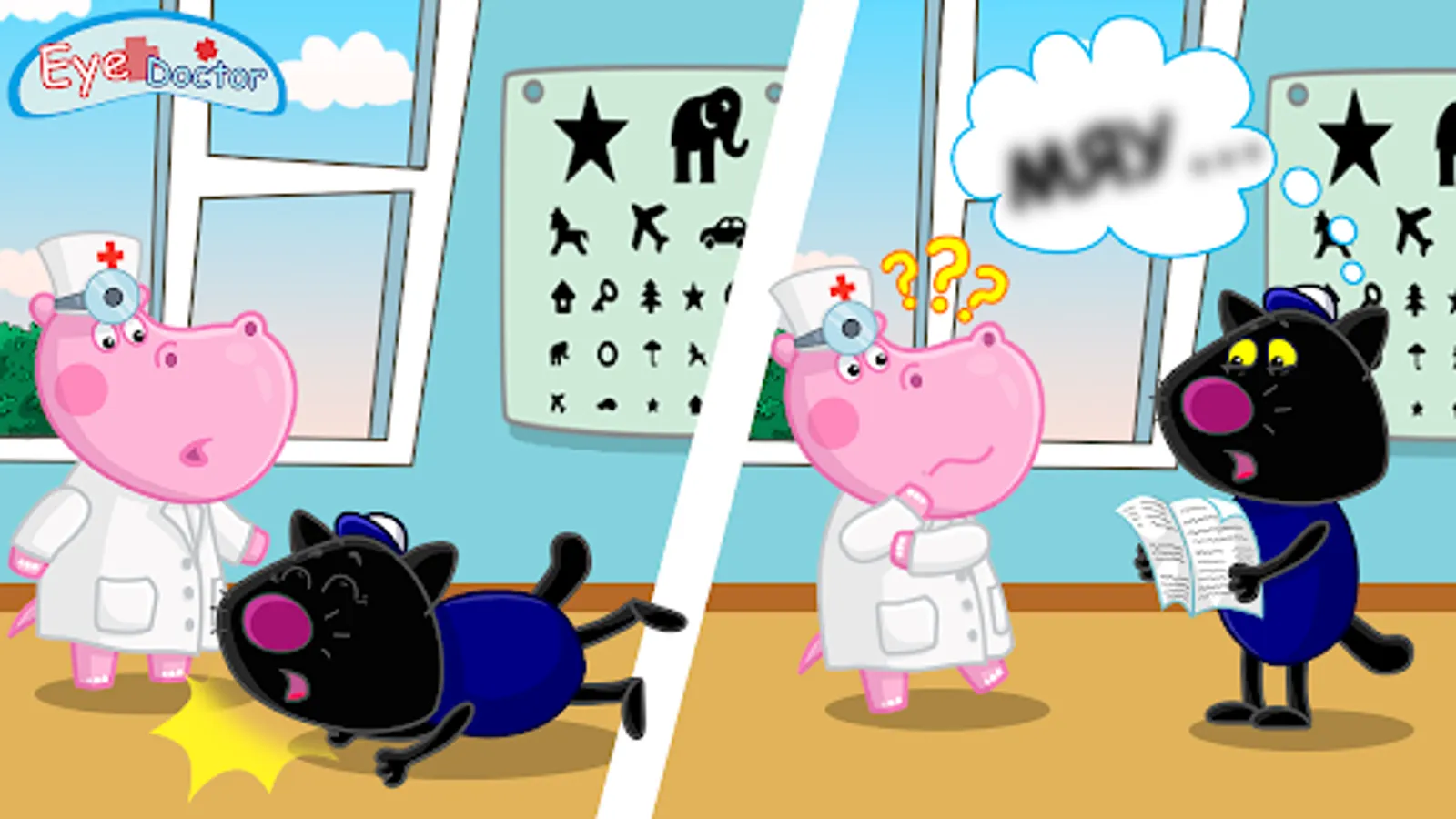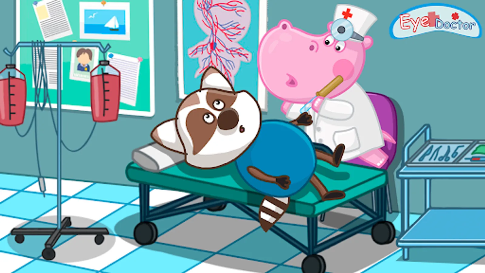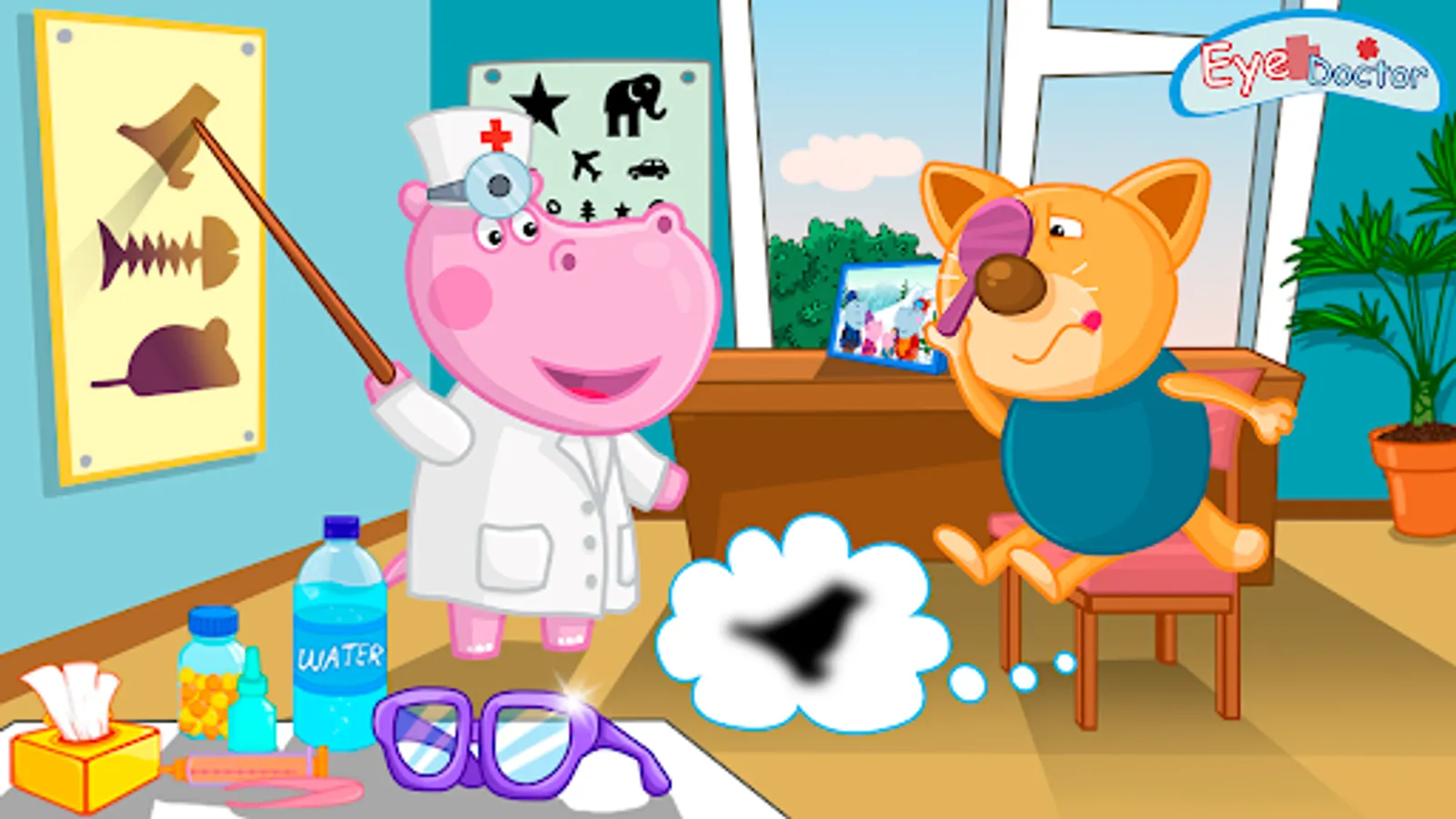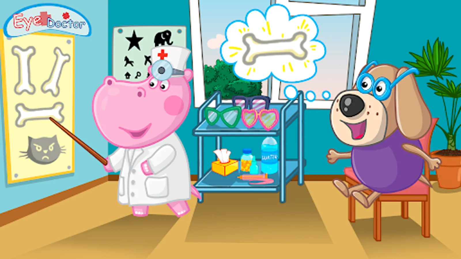 π₯ Doctor simulator for boys and girls will open a lot of secrets of an eye doctor for children. While playing a game, toddlers will get a lot of pieces of advice to save eyesight. Little patients are a good example why it is important to look after your health. Hippo will tell kids about useful vitamins for eyes and what products contain them. Learning with our kids game is a perfect choice for preschoolers and older children.