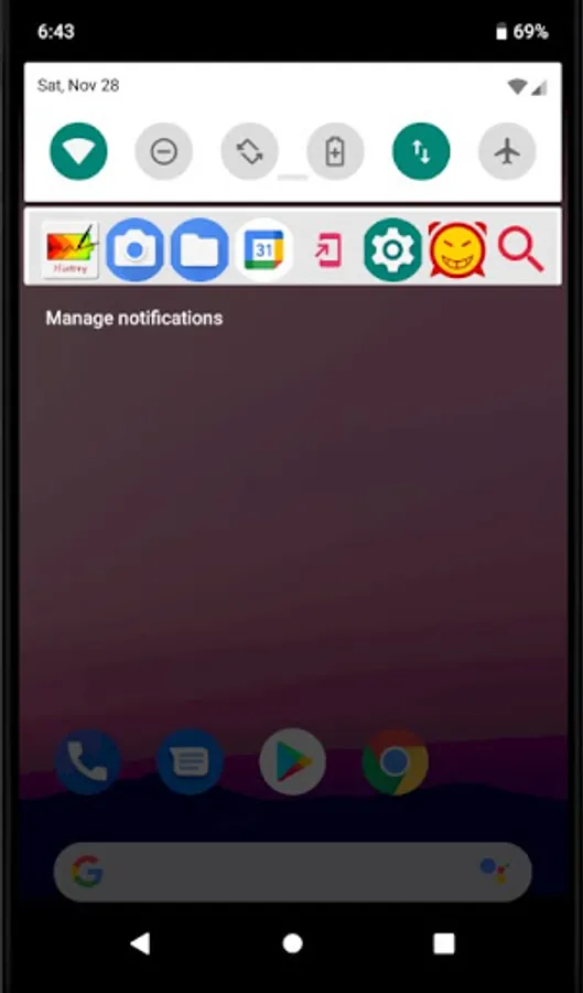 With this application, frequently used smart phone applications and contacts appear on the notification bar.