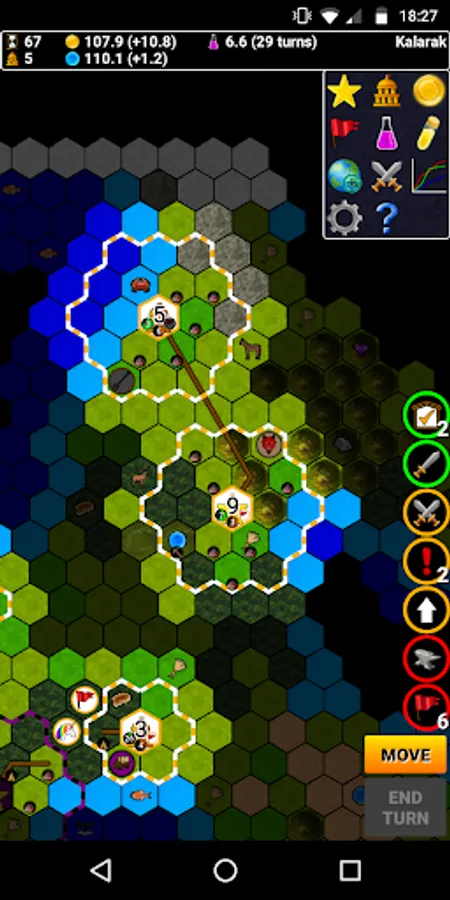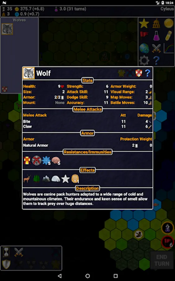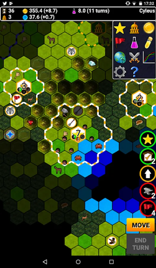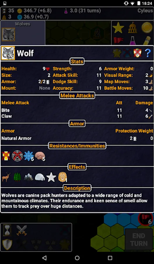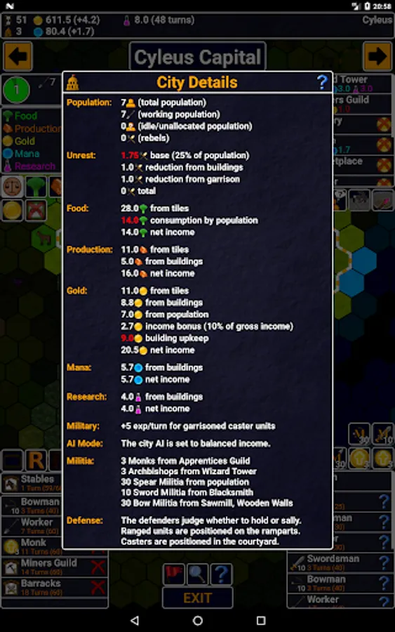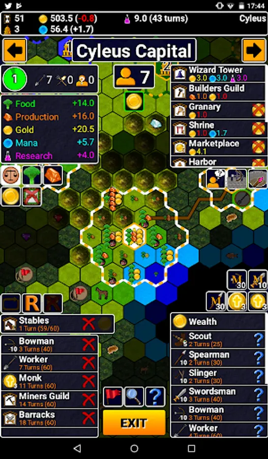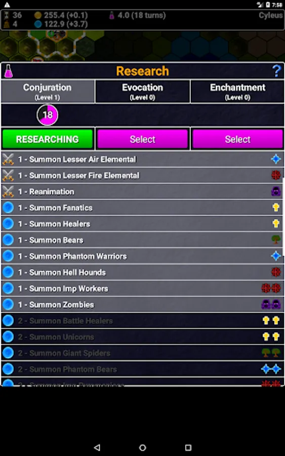 Wizard Warfare consists of a strategic level (the World Map) and a tactical level (the Battle Map). Exploration, expansion, production, research and city management all happen on the World Map, while battles are simulated on the Battle Map.