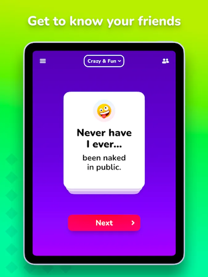 Never Have I Ever is a drinking game for every kind of party. Reveal your friend’s dirty secrets in this naughty drinking game. Gather some friends, bring some drinks and get the party started!