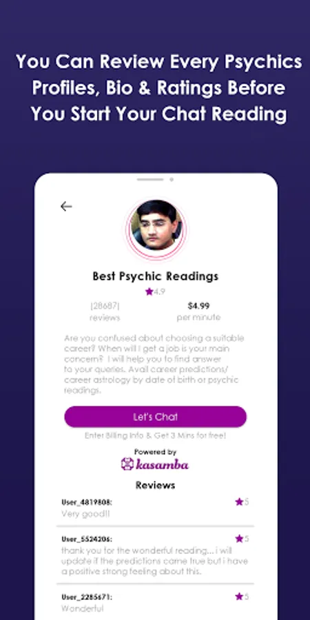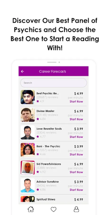 * Live spiritual advisors offering various readings and advice that will help you make the best decisions