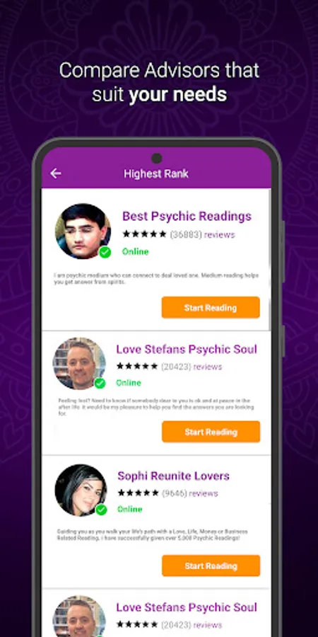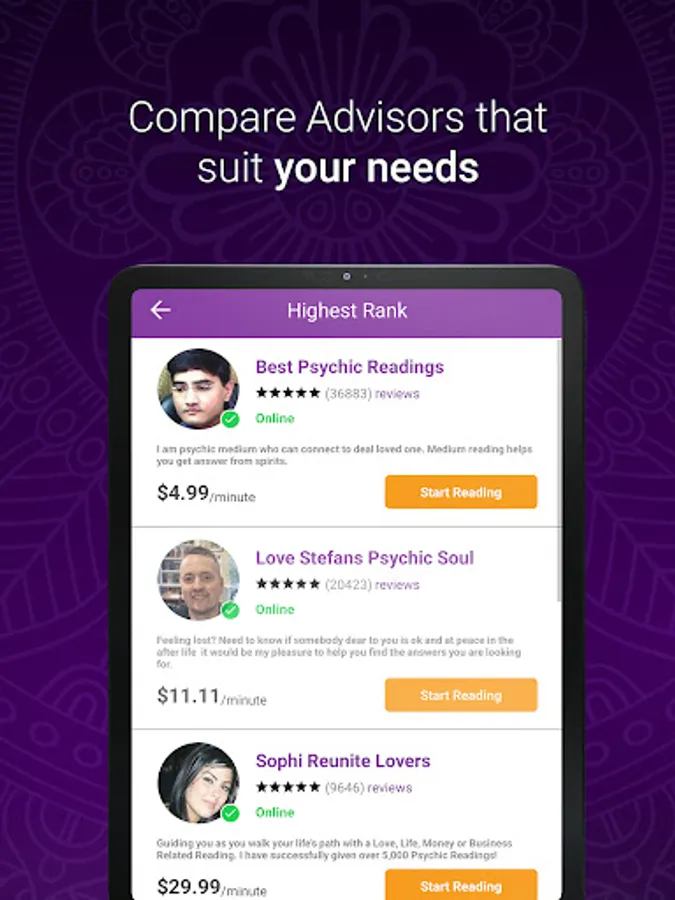 We organize our psychic mediums by rank (based on positive customer reviews), by price, and by whether they’re new to our psychic medium community. That way you can find the right psychic medium for you, no matter what you can afford or no matter how important your spiritual question. There are lots of Psychic mediums apps, like Kasamba, keen psychics and oranum.