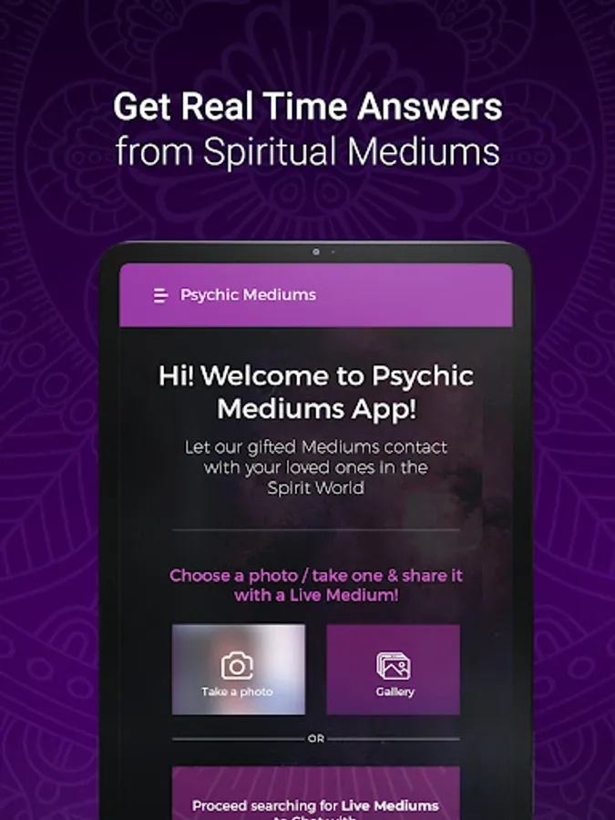 With our app you can try any of our spirit mediums for free -- just choose the one whose profile resonates with you, and you’ll have 3 minutes with 3 different psychics to try them out. ABSOLUTELY FREE. Try as many psychic mediums as you wish until you find a true and meaningful connection with the psychic medium who understands YOU and will help you bridge the gap between you and the spirit world. Our app is a bit different from keen psychics, Kasamba, California psychics or purple ocean, in which you are able to send the psychic a photo of your beloved ones so they could connect them.