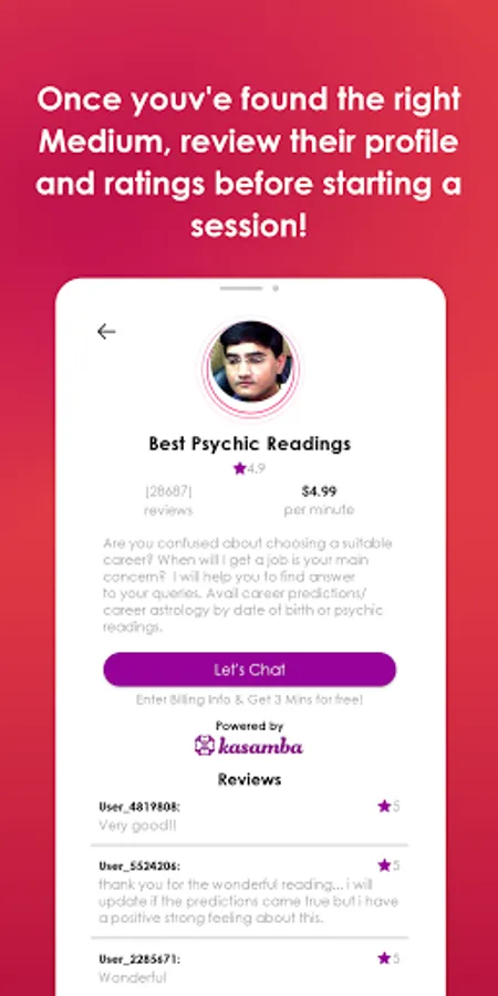 * Detailed profiles listing of expert mediums online