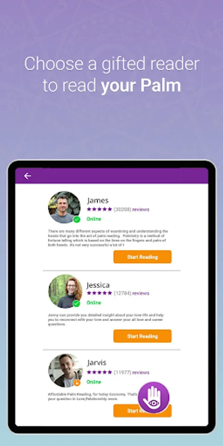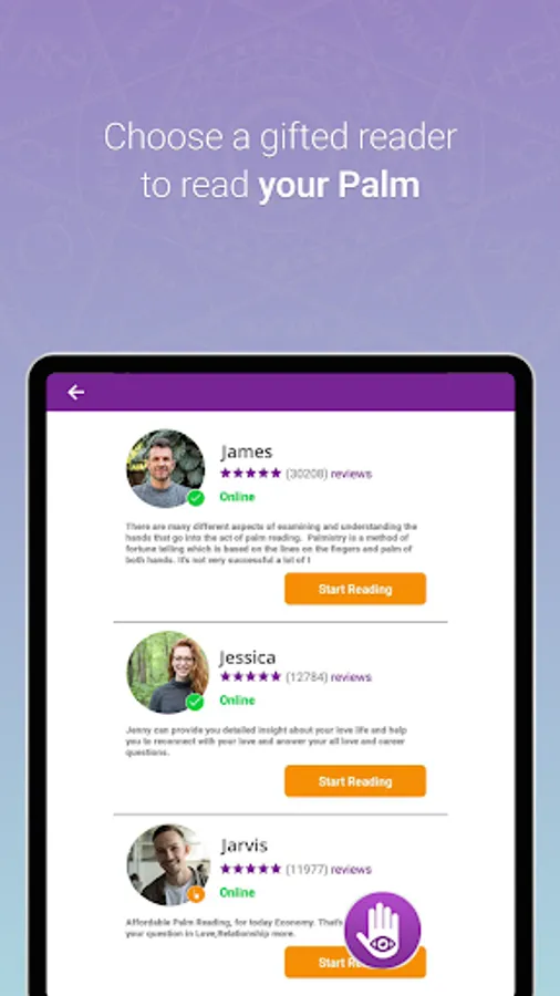 2. Sift through hundreds of professional palm readers and find the one for you!