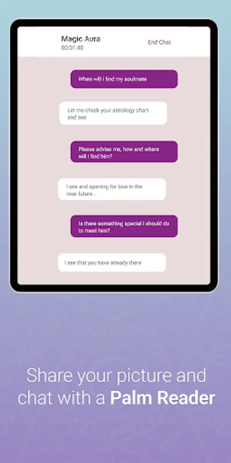 Have you ever wondered what a gifted Palm readers can reveal? What about your life line, love line, career line, fate line, and children? All these mysterious aspects are waiting to be explored. Get a palm lines reading with the help of a professional palm reader via our Palm reading life line app. Our app makes use of your mobile device’s camera to take a detailed picture of your palm and send it directly to our palm readers for a full analysis.