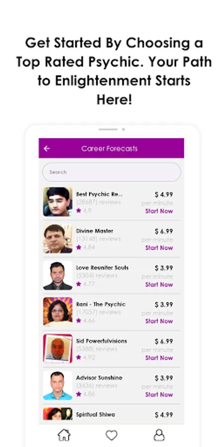 * Detailed profiles listing of expert psychic readers