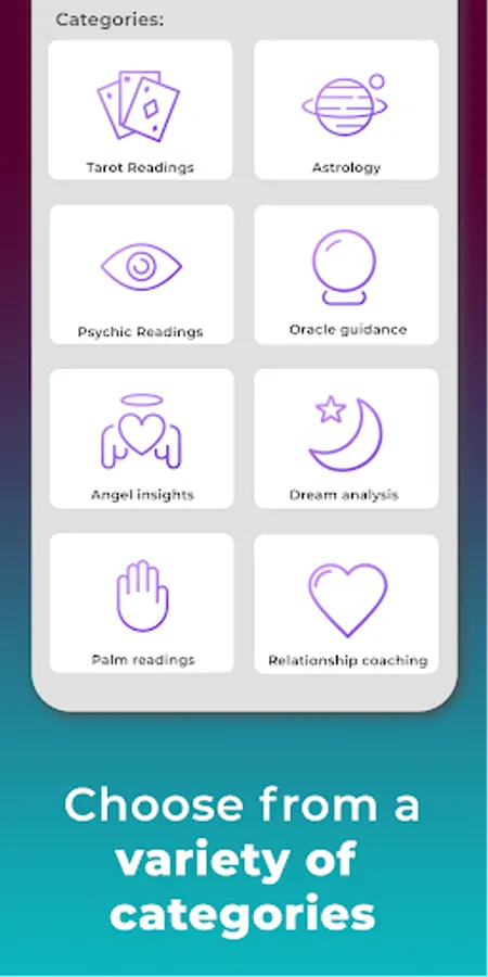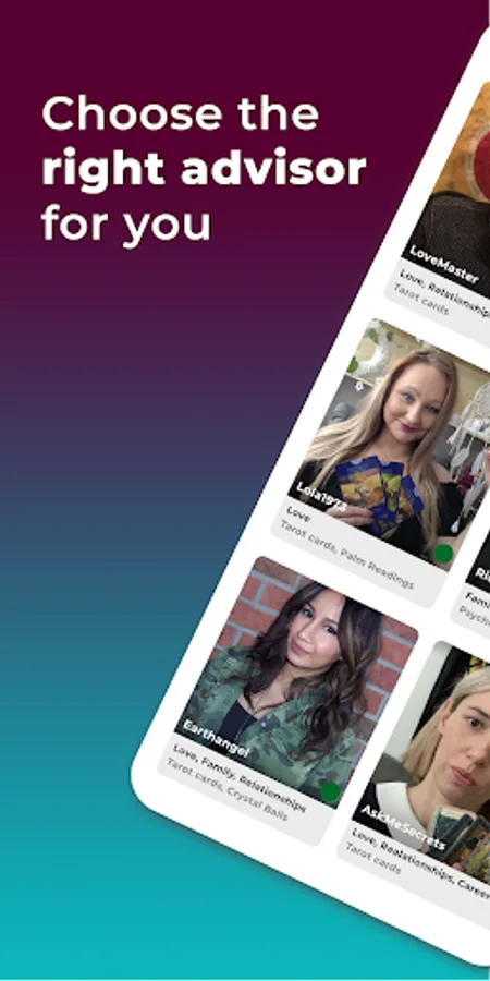 Whether you're looking for an expert in love and relationships, career or something else - we are certain - you'll find a real psychic with valuable insights for you. You will gain peace of mind and the empowerment you need to have accurate insight so you can make the best decisions, have clarity in your thoughts and soul connections in your life. You will have all the answers on your hand just by using our app.
