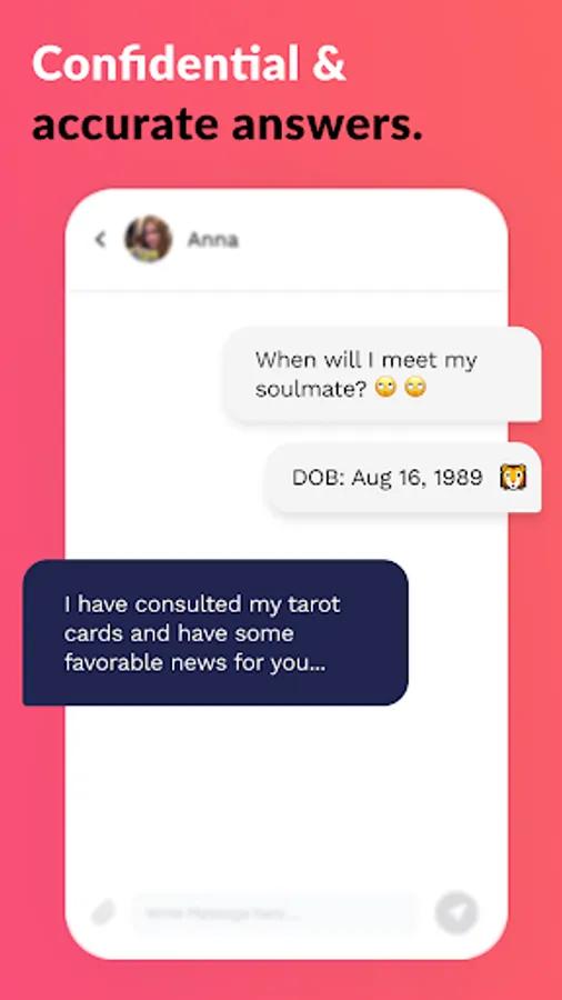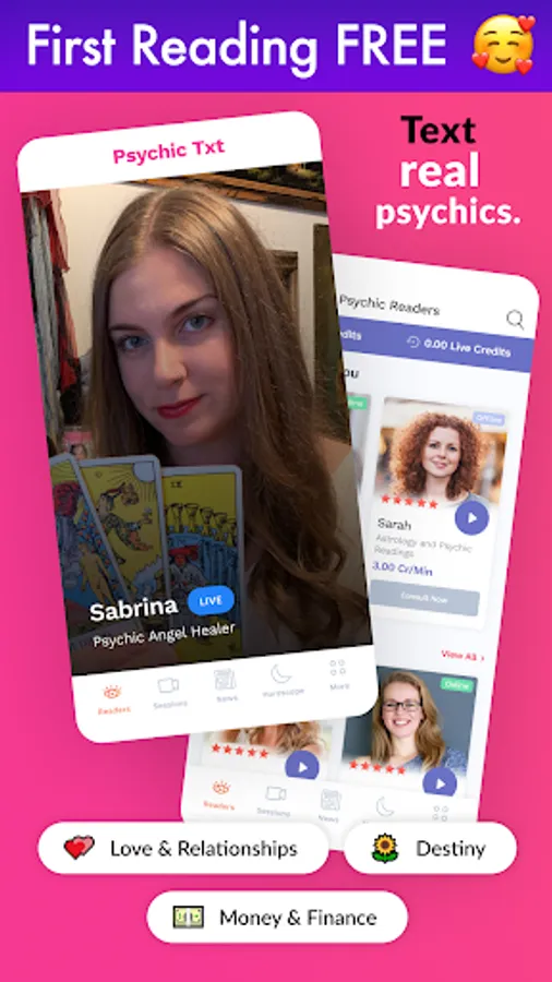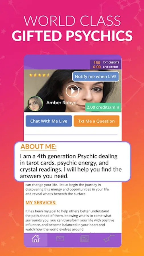 Psychic texts and live psychic chats are available in the app! Contact a real psychic to get advice on life, love, relationships and more. Discover what your future holds ๐ฎ