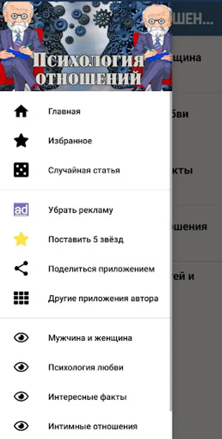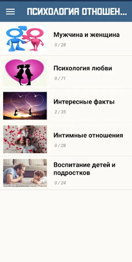Our application contains articles on the "Psychology of relationships and love".