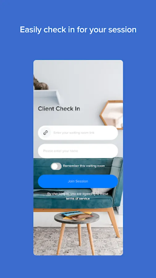 Your therapist will provide you with a link to their waiting room. Simply follow that link, enter your name, and you’ll be checked in and ready for your session.