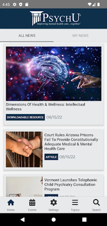 PsychU is an innovative mobile app that provides mental health and addiction professionals with access to award-winning educational resources and tools. The app includes the best from PsychU.org, an extensive library of articles, videos, and podcasts, as well as a calendar of upcoming live and local events.