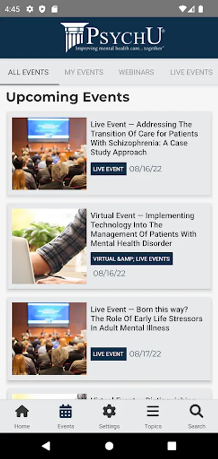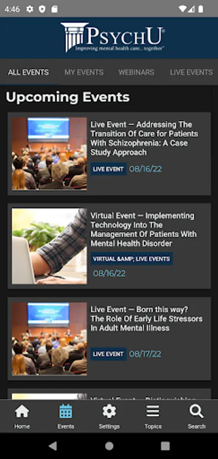 With over 70,000 physicians, psychiatrists, nurse practitioners, physicians assistants, clinicians, care managers, nurses, pharmacists, medical directors, payers, administrators, and other mental health care professionals dedicated to improving the future of mental health care through information, discussion, and collaboration, the PsychU app is a convenient way to easily search thousands of resources on the latest mental health care developments, research, innovative programs, decision support tools, psychiatric scales, market trends, and more. At PsychU, our members share one simple belief: enhanced information, increased collaboration, and ongoing discussion will lead to improved mental health care and patient outcomes for individuals with mental illnesses.