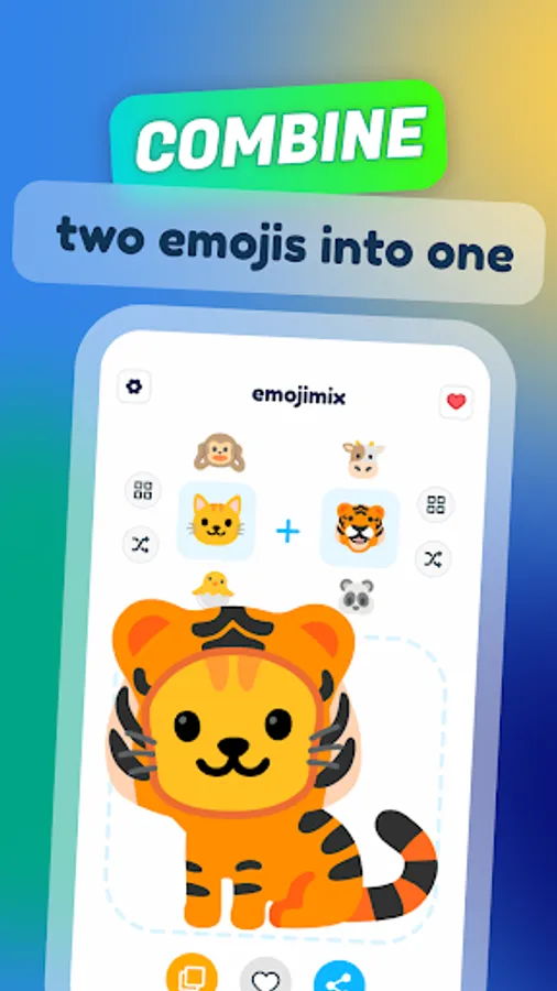 🔥 Create your own emoji has never been so easy. Emoji mix- emoji editor app is easy to use. You only choose two emojis that you like and the Emoji mix- emoji editor app will automatically combine them by custom emoji maker and you will have a unique big emoji instantly.