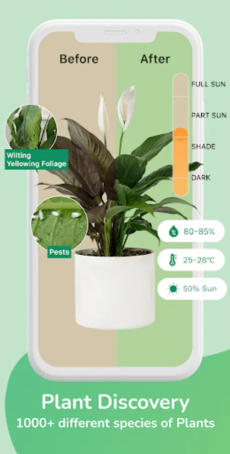 Plant care & Plant health with this app. You don’t need to be a garden and plant care expert to know what’s wrong with your plant. Take photos of the symptoms, check them in our plant disease identifier, and get a detailed description of the disease, as well as proper treatment and prevention recommendations.