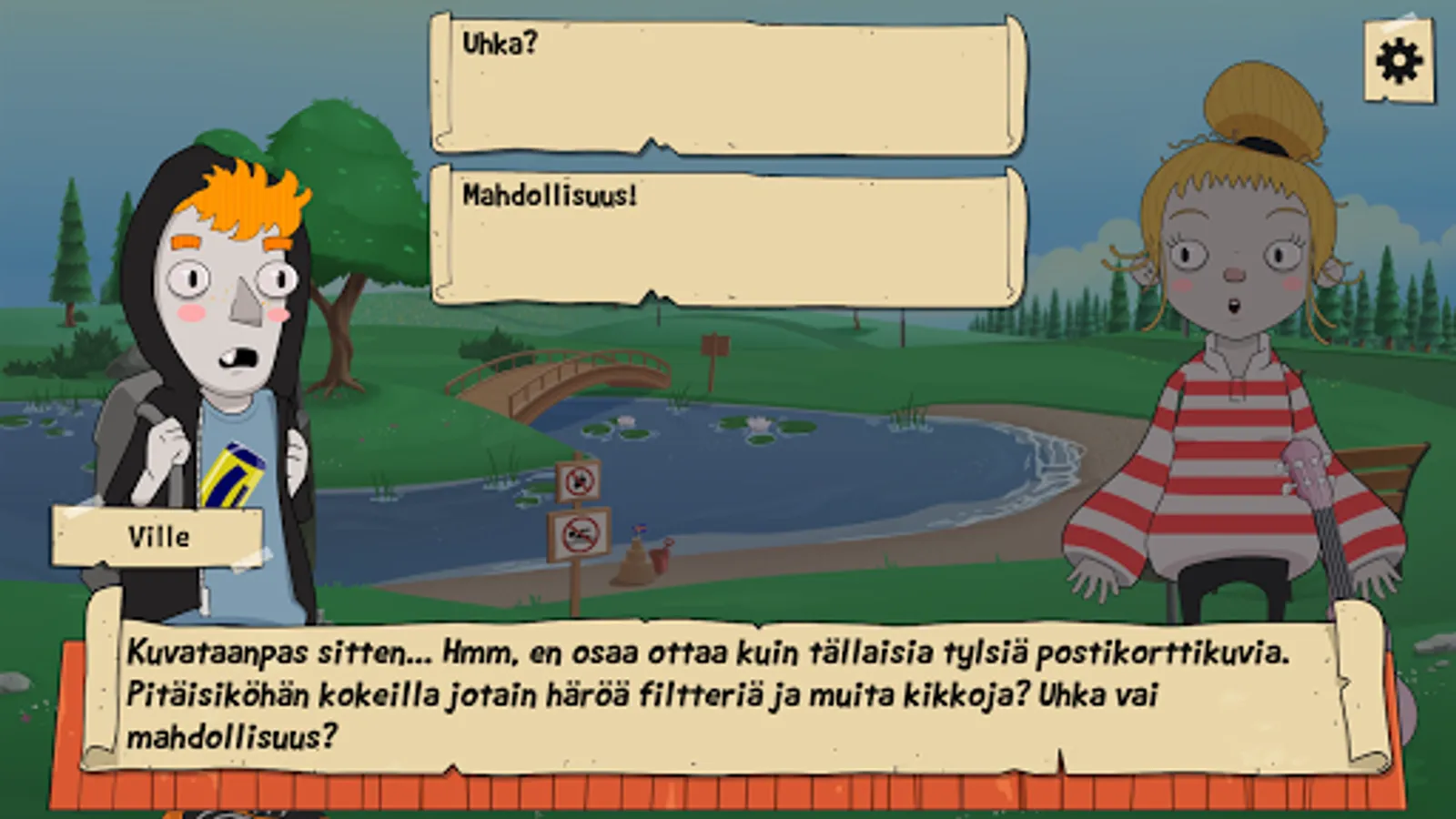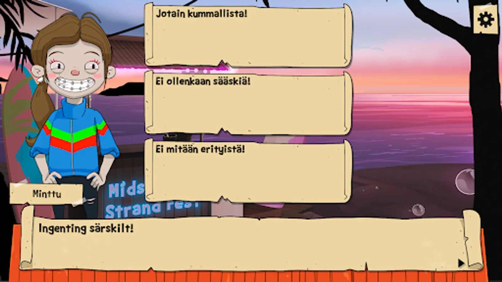 Modigt på svenska is a happy visual short story and adventure with colorful people, beautiful places and peanuts immersed in conversation. The game progresses from scene and discussion to another good story, but you decide what to answer and where the story progresses next. The protagonist Ville is a great friend of mystery stories and an avid amateur detective. The other protagonist, Minttu, is an independent walker on his own moped. However, they need your wit so they don’t get lost on the route and the language doesn’t get knotted in front of the game’s colorful personal card.