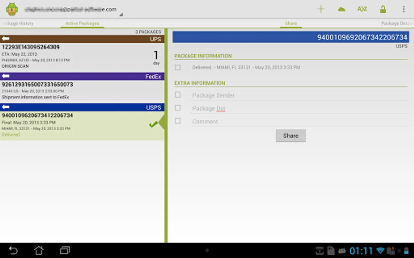 Sync with all of your Android devices (no extra cost if linked on same Google Account). Pro users can now forward shipping confirmation emails to packages@package-buddy.com to automatically add packages to their account (BETA).