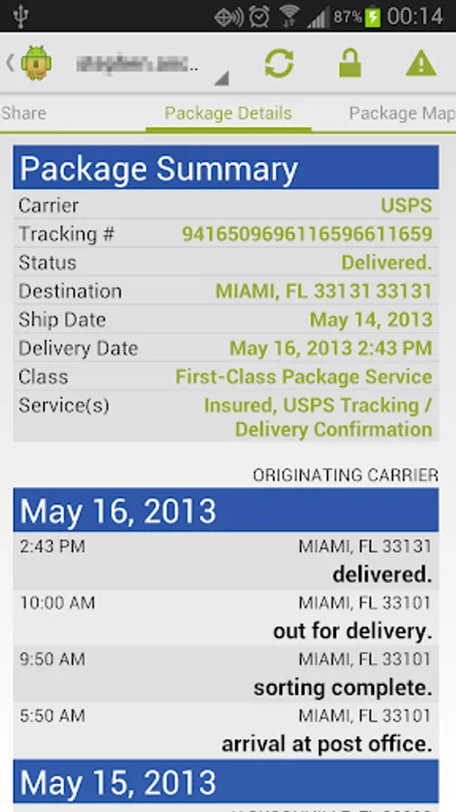 With Package Buddy, you can see a detailed history and a map of the progress for your packages (amount of detail depends on carrier).