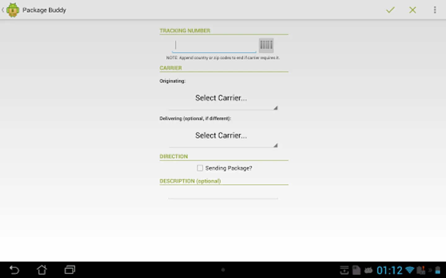 Add packages easily by entering in the necessary information, or head to http://www.package-buddy.com/code to create a QR code to scan in.