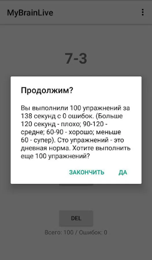 Train your brain every day: just 2 minutes a day to perform simple arithmetic exercises - and after a few days you will feel the effect. Do not overload yourself, just run all 100 exercises per day and it takes no more than two minutes.