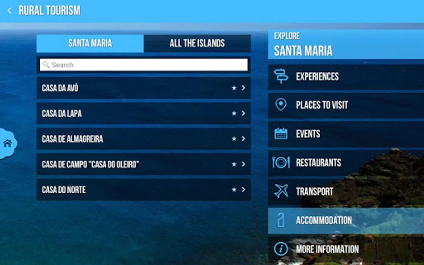 - Find information on tourist recreation companies, hotels, restaurants, attraction points, among others, in order to learn who could help you getting to know the Azores.