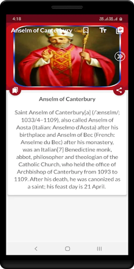 St. Anselm of Canterbury (1033-1109) was an Italian Benedictine monk, abbot, and theologian. He was the archbishop of Canterbury from 1093 to 1109 and was declared a saint soon after his death. Later in 1720, he was pronounced a doctor of the church.