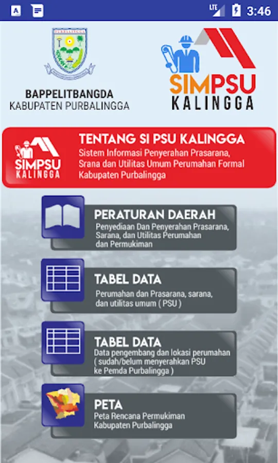 Information System for Submitting Infrastructure, Facilities and Utilities for Formal Housing in Formal District Purbalingga aims to improve services to developers and the public so that the value of PSU benefits can be immediately enjoyed and useful for the surrounding community. Establishment of Information System for Submission of Infrastructure, Public Facilities and Utilities (Sim Psu - Kalingga) Formal Housing in Bappelitbangda, Purbalingga Regency. Socialized (Sim Psu - Kalingga) with stakeholders and housing developers (5 CV / PT).