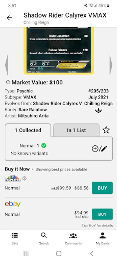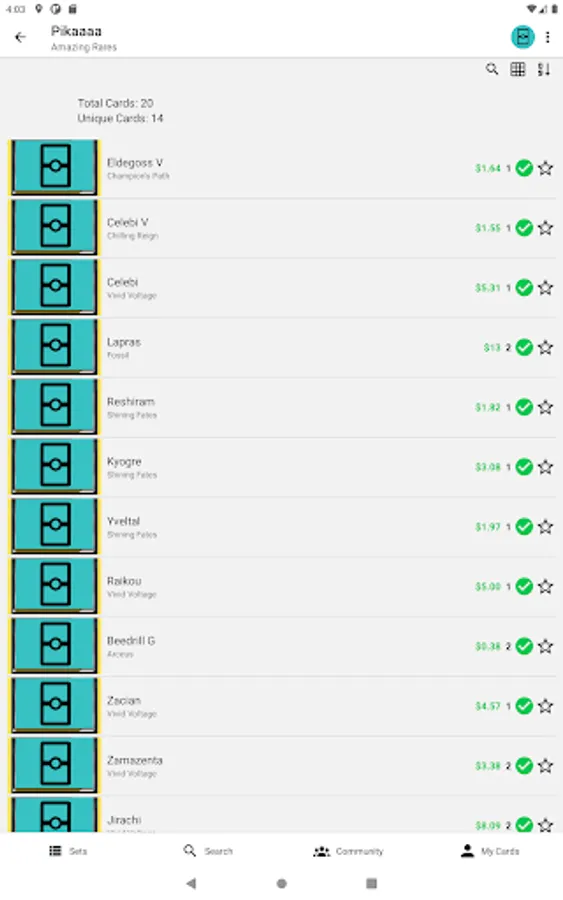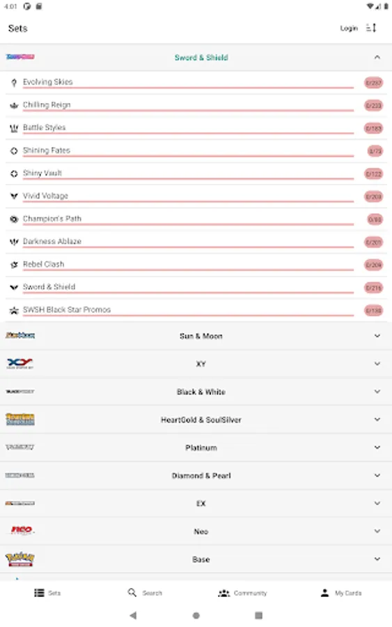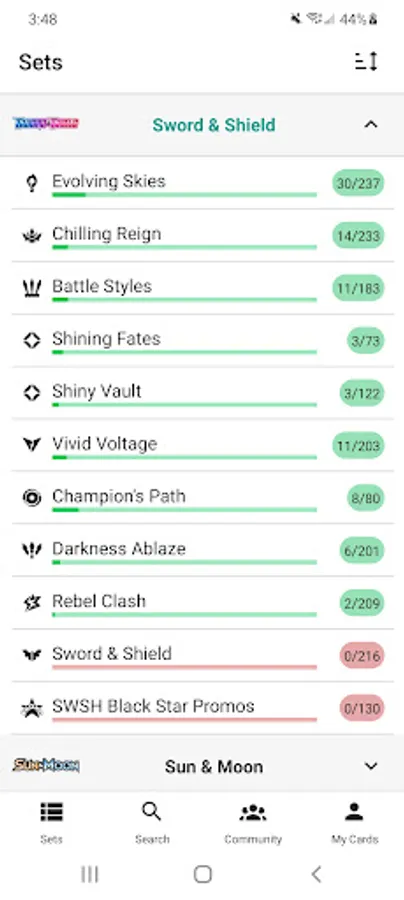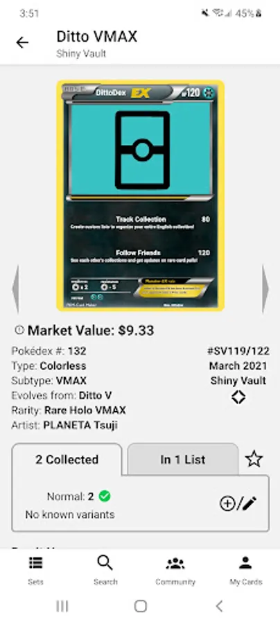 Tracking of variant cards such as reverse holos and first editions is supported! Card database and collection features are even available offline.