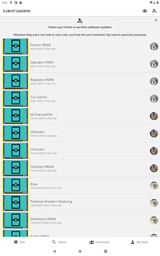 Share your collection link with your friends! You can see their collections and they can see yours, right in the app! Follow them to get updates when they add rare cards! If you wish to make your lists private you can enable this in list settings.