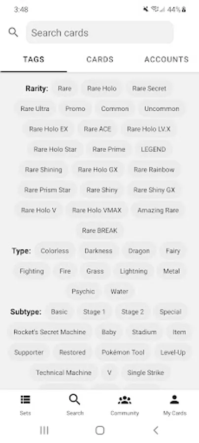 Searching is FAST! Use the instant search along with powerful sort and filter options to find and organize your cards.