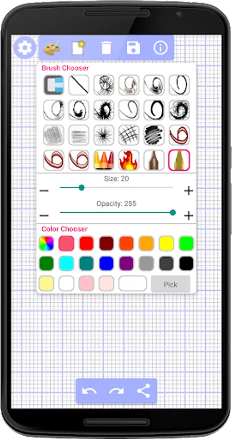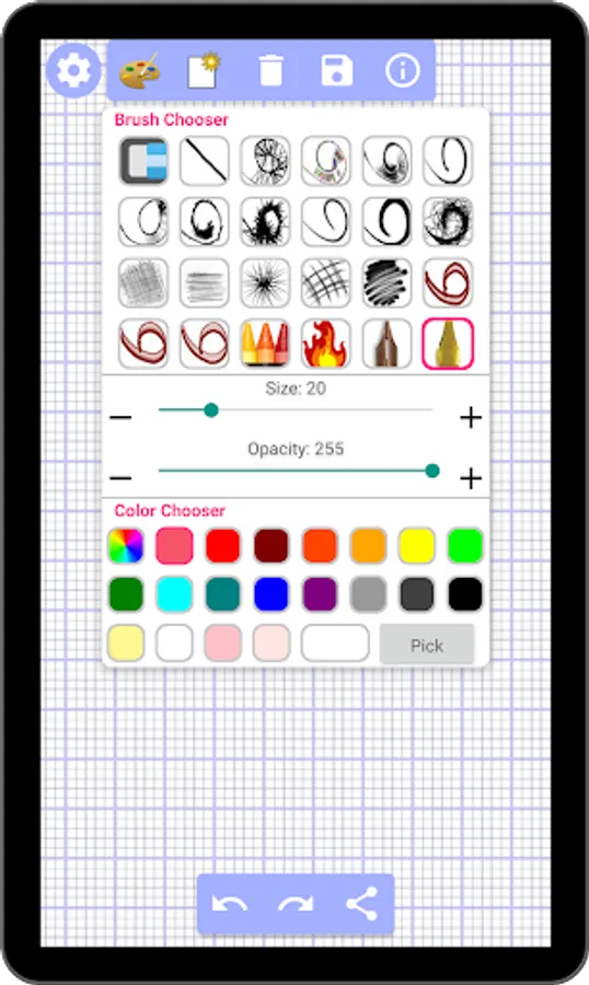 - Eraser, Clear, Create new for custom background color