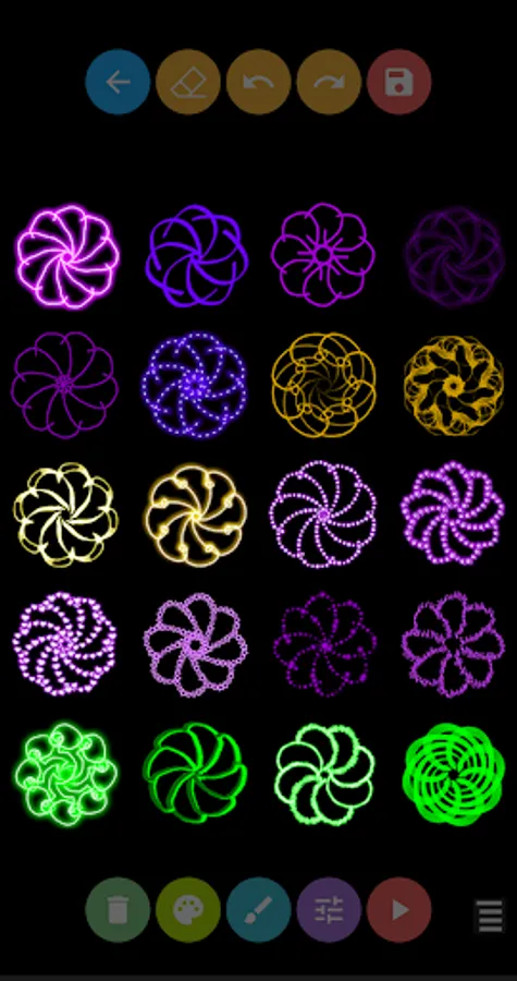 - Draw with many glow brush types: basic patterns, neon stars paint, spiral rainbow, oval endless, paintbrushes: rainbow, ...